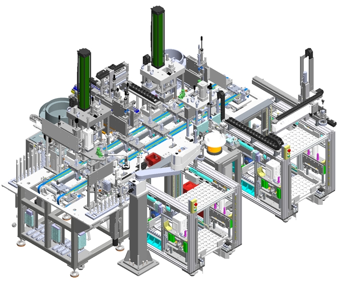 产线分组件装配模块化设计,每段单组线体均可独立完成生产; 各组件生产线通过自动物料传递,完成总成装配及检测; 卷收器本体总成全线无人化生产; 生产线适应性强、柔性度高,涉及生产种类高达176种
